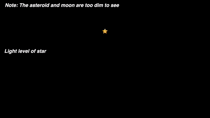 The animation below shows how the star would be hidden by the asteroid and then the moon