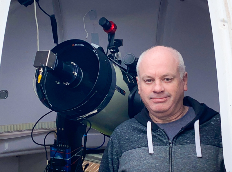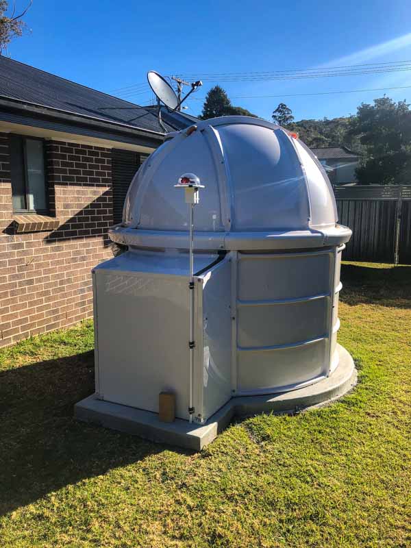 We both have our own backyard observatories with large telescopes. Dave's observatory is a roll-off-roof type located at Hawkesbury Heights and is called Kuriwa Observatory. It houses a 12-inch telescope. Peter's observatory is a domed type called Hazelbrook Observatory housing an 11-inch telescope.